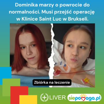 „Mam na imię Dominika i od maleńkości toczę nierówną walkę o to, co najcenniejsze. Gdy miałam tylko 9 miesięcy przeszłam rodzinny przeszczep wątroby – dawcą został mój wujek. Miałam nadzieję, że w moim życiu nie pojawi się już więcej trudności, jednak dziś znów muszę walczyć!