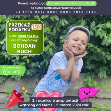 19.06.2020 synkowi założono stomię na żółć. Stomia nie pomogła i Bohdan musiał przejść transplantację wątroby 5.03.2024 r, ponieważ stan zdrowia pogorszył się od momentu zdiagnozowania choroby. Dawcą była mama Bohdana.