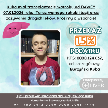 Bardzo prosimy o pomoc szczególnie Jakubowi, który cierpi na cholestazę z mutacją w genie DCDC2, nadciśnienie wrotne z żylakami przełyku, hipersplenizm. Jakub w sierpniu 2025 roku trafił do szpitala w stanie średnim z zażółceniem powłok skórnych, tachykardią, splenomegalią i bólem brzucha oraz krwawymi wymiotami. Kuba zażywa dużo leków. Niestety nie wszystkie są refundowane. Do tego dochodzą koszty wyjazdów do Centrum Zdrowia Dziecka w Warszawie, które jako jedyny szpital wykonuje transplantację wątroby u dzieci.