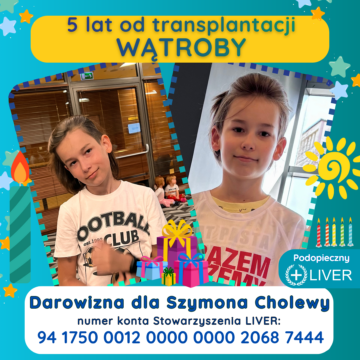 4 listopada 2020 roku Szymonek został poddany rodzinnej transplantacji wątroby w Ośrodku w Palermo. Nowe życie podarowała Mama Szymusia, a operacja była obarczona dużym ryzykiem z powodu ciężkiego nadciśnienia płucnego.