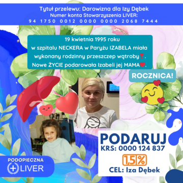 Stowarzyszenie Pomocy Chorym Dzieciom LIVER zwraca się do Państwa z bardzo gorącą prośbą o udzielenie dalszej pomocy finansowej