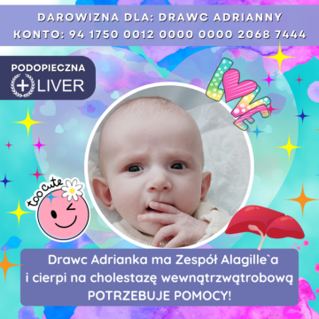 Adrianka bardzo często musi przebywać w szpitalu, bo oprócz serduszka ma chorą wątrobę i być może w przyszłości będzie wymagała transplantacji wątroby. Na rzecz pomocy Adusi można podarować 1,5% PODATKU numer KRS 0000 124 837 lub darowiznę. Każda pomoc jest darem ratującym życie ADY. Dlatego serdecznie dziękujemy wszystkim Darczyńcom za DAR – ŻYCIA.
