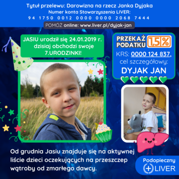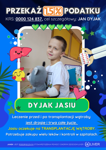 Dzięki Waszemu ogromnemu wsparciu oraz pomocy Stowarzyszenie Pomocy Chorym Dzieciom LIVER jesteśmy w stanie zapewnić Jasiowi najlepszą możliwą opiekę”.