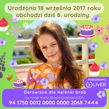 Bez wątroby człowiek nie może żyć. Organ ten w porę nieprzeszczepiony, prowadzi do nieodwracalnych zmian w mózgu, które mogą spowodować poważną niepełnosprawność umysłowo-ruchową. Helenka jest dzielną, wesołą dziewczynką, teraz po operacji będzie musiała zażywać drogie leki immunosupresyjne. Do tego koszty dojazdu do Warszawy na częste wizyty kontrolne będą finansowym obciążeniem dla rodziny.
