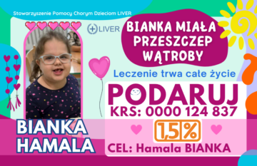 Przeszczep wątroby to walka o życie do końca swoich dni. Przewlekłe przyjmuje bardzo drogie leki . Potrzebna jest pomoc na drogie leki, dojazdy + zajęcia z terapeutami, dojazdy do szpitala który jest oddalony od nas 600 km. Prosimy o pomoc finansową na leczenie naszej córki Bianki.