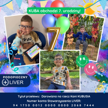 Kubuś Kania jest po zabiegu zszycia powłok skórnych (po transplantacji wątroby). Operacja odbyła się bez komplikacji. Wszystko poszło zgodnie z planem. Udało się zamknąć powłoki skórne bez łaty i dodatkowo udało się zamknąć przetokę po tracheostomii. Wyniki wątrobowe podniosły się do góry i wymagał obserwacji. Kubuś w dalszym ciągu uczęszcza na zajęcia rehabilitacyjne,logopedyczne, cotygodniowe zajęcia terapia medek w Nowym Targu oraz przedszkola. Widzimy coraz większe postępy syna. Po uczęszczaniu na zajęcia rehabilitacyjne, Kubuś zaczął samodzielnie stawiać kroki, jest z tego bardzo dumny. Komunikacja dzięki tabletowi mówik stała się dużo płynniejsza. W listopadzie czeka nas kontrola w CZD w Warszawie . Na początku przyszłego roku odbędzie Kubuś turnus rehabilitacyjny. W ciągu ostatnich tygodni Kubuś odbywa wizyty u różnych specjalistów (kardiolog, nefrolog, stomatolog czy okulista.Dzięki stałym kontrolom jesteśmy spokojni o dobro syna . Jako rodzice jesteśmy z niego bardzo dumni!