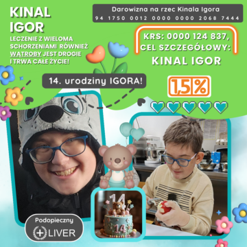 Kinal Igor urodził się 30 marca 2012 r. jako wcześniak m.in. z ciężką zamartwicą urodzeniową, wrodzonym zapaleniem płuc, małą dysmorfią, przerostem mięśnia sercowego, przerostem nadnerczy. Jego wątroba nadmiernie rosła i ma rozmiar większy niż u osoby dorosłej. Biopsja nic nie wykazała.
