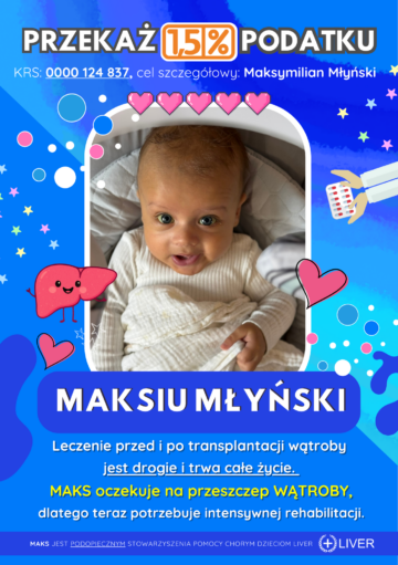 Po 7 tygodniach spędzonych w domu trafiliśmy do szpitala z gorączką nieznanego pochodzenia – byliśmy pewni, że to jakaś błahostka i zaraz wrócimy do domu. Jednak mijały kolejne dni i tygodnie – początkowo w szpitalu we Wrocławiu, następnie zostaliśmy przetransportowani do Centrum Zdrowia Dziecka w Warszawie, gdzie usłyszeliśmy diagnozę – atrezja dróg żółciowych. Na tamtą chwilę świat się dla nas zawalił. Nasz malutki człowiek, który ledwo co przyszedł na świat czekał na poważną operację metodą Kasai, która dawała szansę na uniknięcie ostateczności – przeszczepu wątroby. Operacja jednak nie przyniosła oczekiwanych rezultatów i Maksiu jest już w trakcie kwalifikacji do przeszczepu. Na szczęście istnieje coś takiego jak przeszczepy od dawcy żywego – w tym przypadku dla Maksia takim dawcą będzie jego mama.