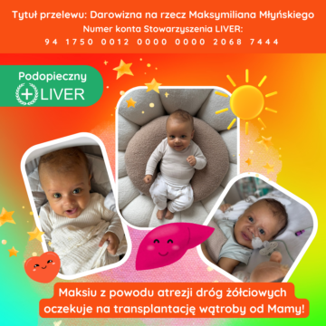 Po 7 tygodniach spędzonych w domu trafiliśmy do szpitala z gorączką nieznanego pochodzenia – byliśmy pewni, że to jakaś błahostka i zaraz wrócimy do domu. Jednak mijały kolejne dni i tygodnie – początkowo w szpitalu we Wrocławiu, następnie zostaliśmy przetransportowani do Centrum Zdrowia Dziecka w Warszawie, gdzie usłyszeliśmy diagnozę – atrezja dróg żółciowych. Na tamtą chwilę świat się dla nas zawalił. Nasz malutki człowiek, który ledwo co przyszedł na świat czekał na poważną operację metodą Kasai, która dawała szansę na uniknięcie ostateczności – przeszczepu wątroby. Operacja jednak nie przyniosła oczekiwanych rezultatów i Maksiu jest już w trakcie kwalifikacji do przeszczepu. Na szczęście istnieje coś takiego jak przeszczepy od dawcy żywego – w tym przypadku dla Maksia takim dawcą będzie jego mama.