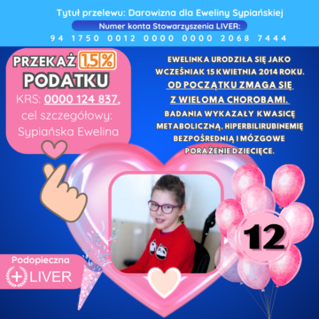 Stowarzyszenie Pomocy Chorym Dzieciom LIVER zwraca się do Państwa z bardzo gorącą prośbą o udzielenie pomocy finansowej