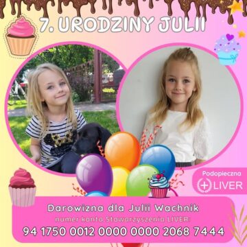 Wachnik Julia przyszła na świat 22 września 2018 r. Stwierdzono u niej chorobę wątroby. Julia choruje na zaburzenie syntezy kwasów żółciowych czyli ksantomatozę mózgowo – ścięgnistą, ma również wadę serduszka. Staraliśmy się uzyskać możliwość dofinansowania leku hamującego chorobę i ratującego jej życie.