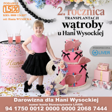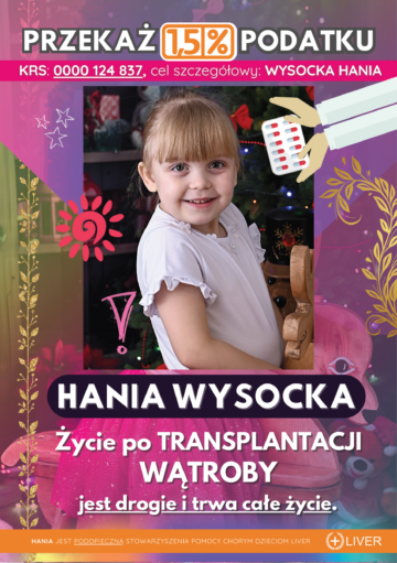 Hania Wysocka urodziła się 22.12.2020 roku jako pozornie zdrowa dziewczynka otrzymała 10 punków w skali Apgar. W 5 tyg. Życia wykonaliśmy badania krwi z powodu przedłużającej się żółtaczki. Po otrzymaniu wyników okazało się, że mocno odbiegają od normy, dlatego otrzymaliśmy skierowanie do szpitala w Koninie. Tam lekarze po kolejnych badaniach laboratoryjnych oraz usg poinformowali nas, że nie są w stanie pomóc Hani i że trwają konsultacje z kliniką w Warszawie. Po dwóch dniach zostałyśmy przetransportowane do Centrum Zdrowia Dziecka w Warszawie tam po dalszej diagnostyce oraz koniecznej biopsji wątroby podjęto decyzję o zabiegu metodą Kasai ratującą życie naszej córki. Po operacji 12.02.2021roku, która trwała 5 h usłyszeliśmy diagnozę, która brzmiała jak wyrok -Atrezja Dróg żółciowych.