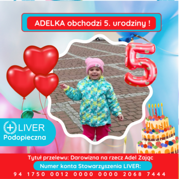 Adel Zając urodziła się w 14.10.2020 w Ukrainie. Jest pół Ukrainką pół Polką. Gdy przyszła na świat wszystko było dobrze. Niestety żółtaczka długo się utrzymywała, zmierzono bilirubinę, dostała leki i wróciła do domu. Z Adel dalej coś było nie tak. Miała większy brzuch i z tego powodu znów wróciła do neonatologa. Ponowne badanie wykazało podwyższenie bilirubiny, podejrzewano atrezję dróg żółciowych. Potem okazało się, że Adel potrzebuje operacji Kasai, lecz trzeba było jechać aż do Lwowa. 6.01.2021 odbyła się operacja Kasai za dwa dni z OIT przeniesiono ją na salę. Wszystko było ok. Niestety pokarm mamy trzeba było odstawić i wprowadzić mleko modyfikowane. W marcu Adel mogła już przyjechać do Polski. Tutaj w CZD zakwalifikowano ją do transplantacji wątroby. Badania wykazały marskość wątroby i niepokojące wyniki echa serca.