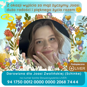 Joasia musi do końca życia brać drogie leki immunosupresyjne oraz leki przeciwzapalne. Jej życie staje się coraz lepsze i normalniejsze. Niedawno Joasia wyszła za mąż i żyje jak każdy młody człowiek u boku kochającego męża oraz wspierających od zawsze Rodziców.
